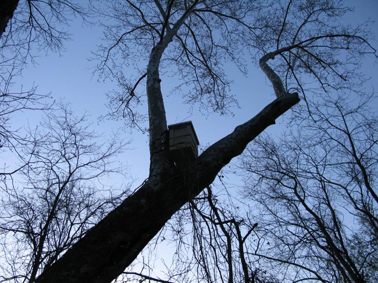 The mass of bees (often tens of thousands of them) that emerge from their old home is called a swarm. They will temporary settle on a branch or some other object, forming a “beard,” and scout bees will go from there in all directions searching for a new home such as a tree hollow. So if you place on a tree a box that will look to the bees as a suitable new dwelling, the scouts will signal their sisters (all worker bees are female) to come and occupy the box. Not unlike a birdhouse: you set it out, and the birds move in. Same here: you set out a special “bee house,” and the bees move in. As simple as that. Besides, you do not even need to know where the bee trees (or the swarming hives) are located: a swarm can travel ten miles or more in search of a nice new home.