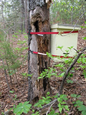 The bees proved totally indifferent towards the swarm trap attached right to their bee tree. A swarm preferred to move into a similar box hung some 50 ft away on an oak tree, property raised 15 ft off the ground.