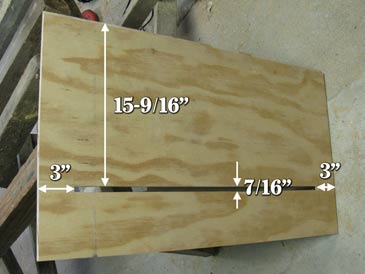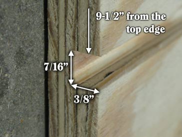 Cut frame rests (3/8” by 7/16” rabbets) along the top inner edge of front and back walls. Cut the dadoes of the same size (3/8” by 7/16”) on the inner surface, 9-1/2” down from the top of each wall. Then cut the entrance on the front wall. The entrance is a 7/16” horizontal slit positioned some 15-9/16” down from the top of the wall and stopping 3” shy of each side: