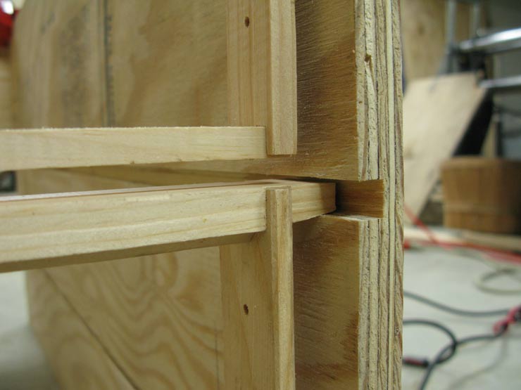 When you buy plywood, pick a piece that is nice and flat; avoid warped sheets. If your plywood does have a curve to it, assemble it so it curves outside (if it curves inside, it may pinch your frames). If you buy plywood from home improvement stores that have large panel saws to cut it to your dimensions, monitor the quality of every cut with a tape measure — or you may later be surprised to discover that some cuts were off by as much as 1/4”!