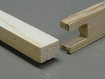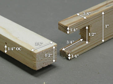 3. Cut a rabbet 5/16” wide by 3/8” deep on each 1-1/2” edge at one end of the strip (use a dado blade; a tenoning jig recommended for accuracy and safety).