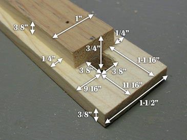 4. Cut a dado 1/2” wide by 3/4” deep in the center of the other end of the strip, parallel to the 1-1/2” side (use a dado blade; a tenoning jig recommended for accuracy and safety).