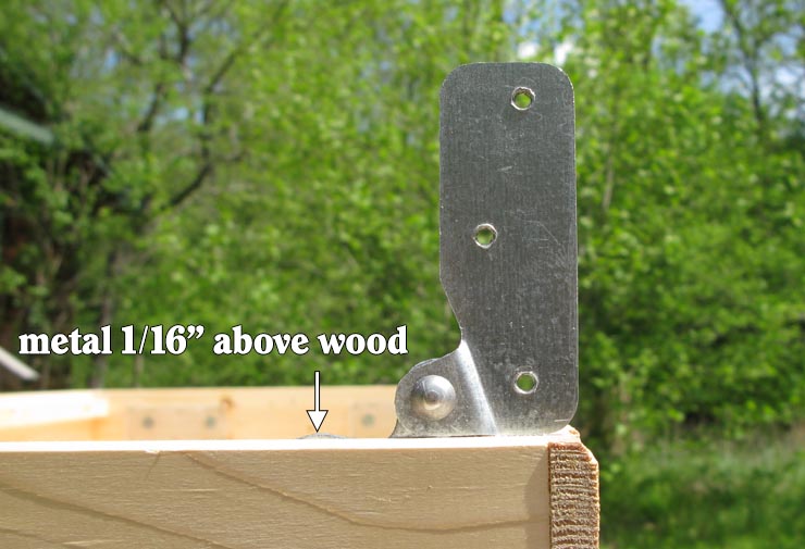 Step 3. The two metal angles that will cover the corners of the front wall – cut them down to 18-5/8” so the top of the metal won’t catch on the lid when it opens and closes. Attach these angles with lath screws – bottom and mid-height – but don’t attach the top yet. These angles will be 1/4” shy of the top of the wall; this is all right because they will be covered by the lid.