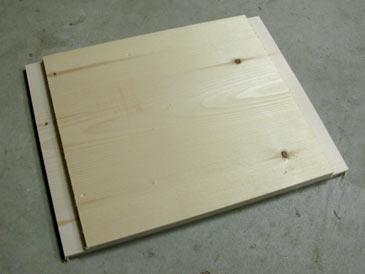 The top bar is most easily built out of “one-by-” stock (actual thickness: 3/4”). Cut a piece of board 14-5/16” long; cut rabbets 1-1/16” x 3/8” on both ends of the board; then rip it into 1-1/2” bars.