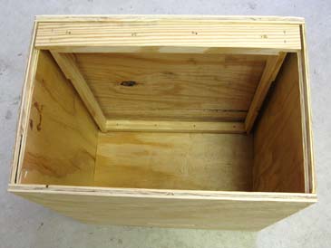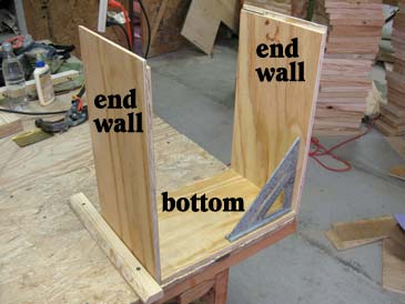 Step 5. Assemble the box. Put the bottom on a flat surface and attach one end wall with glue & staples (or nails), the frame rest facing inside. Attach the opposite wall (glue and staple), the frame rest facing inside. Attach the front wall to the assembly, then the back wall. The box is ready.