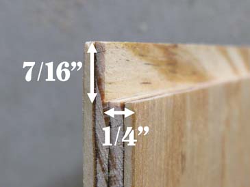 Step 2. Cut a rabbet 1/4” x 7/16” along one 9-1/8” edge of each end wall cut in Step 1. These are the frame rests.