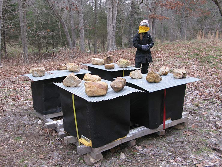 The choice of hive models is thoroughly discussed in Keeping Bees with a Smile and in Keeping Bees in Horizontal Hives. We use, recommend, and sell Layens horizontal hives. We also have free plans for building insulated and solid wood Layens. All our Layens hives are directly compatible with the Layens swarm traps discussed above. The principal difference in hive models is capacity, mobility, and insulation, which also affects the cost.