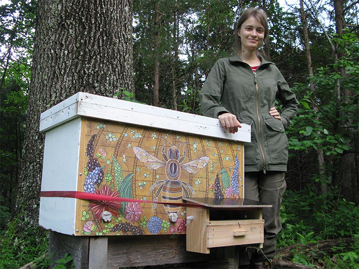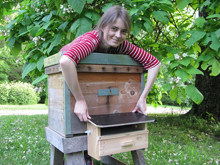 As Lada demonstrates, you can mount the pollen collector at the bottom entrance as well – as long as your hive is elevated so the pollen trap can hang down.