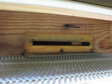 CAUTION!!! Make sure your hive is not going to swarm when the pollen collector is in operation! If the colony swarms, the mother queen will leave with the swarm. The new virgin queen returning from her mating flight won’t be able to re-enter the hive when the pollen collector door is down – she’s too big to fit through these holes – and your hive will become queenless.