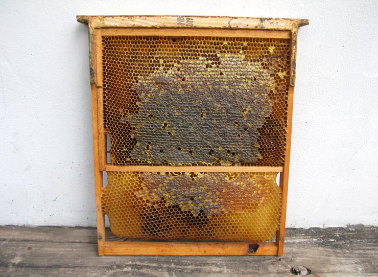 If a honey frame has no brood in it, it’s much less mess to extract honey first and then cut the frame with empty comb. You can feed the honey back to the bees using a Layens feeder (see below).