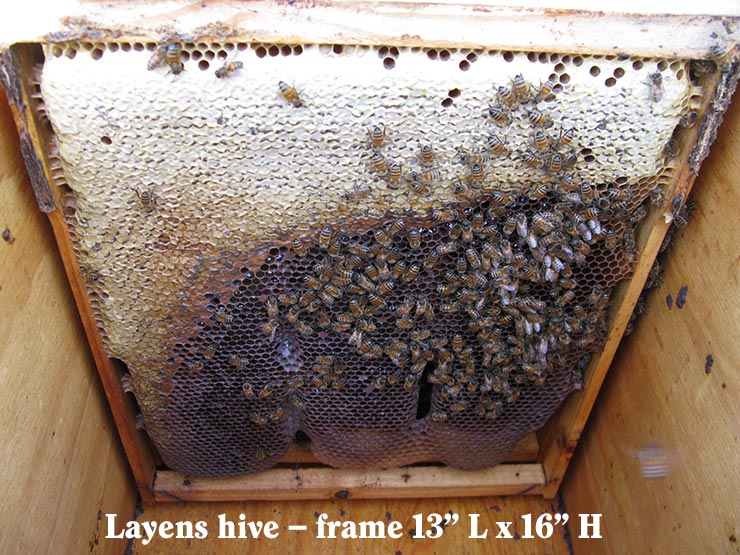 We do not recommend using horizontal Langstroth hives in cold climates. The shape of the frame and of the nest (too shallow and too wide) makes it difficult for the bees to heat and limits their access to food. (And in the summer it is more difficult to cool and ventilate.) The Layens frame (deep and narrow) mimics the shape of honeycomb inside a bee tree, and results in better wintering. After comparing long Langstroth and Layens hives side-by-side (and reading research on that topic), we converted all our apiaries to the Layens hive, and this is the hive we recommend.