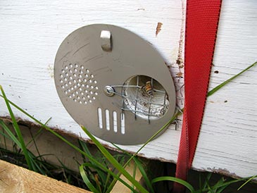 If your hive has a slot entrance, staple 1/2” or 3/8” square wire mesh over the entrance, or attach it with small lath screws.