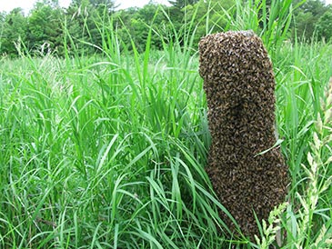 In nature, swarming interrupts brood rearing and cleanses colonies of parasites and disease. This is because many parasites (e.g., Varroa mites) and disease (e.g., European foulbrood) breed on honey bee brood (larvae and pupae) — so the temporary absence of brood messes up the parasites’ reproduction.