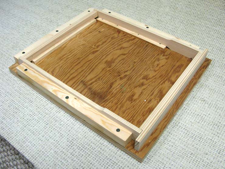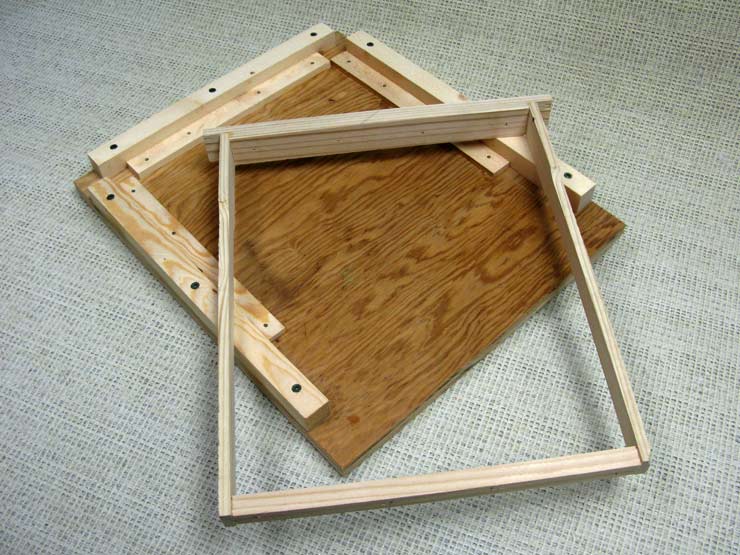 With this simple-to-build jig you can assemble 100 Layens frames per hour using a narrow-crown staple gun. The jig holds all the parts of the frame perfectly square so you can staple it together with great speed and precision.