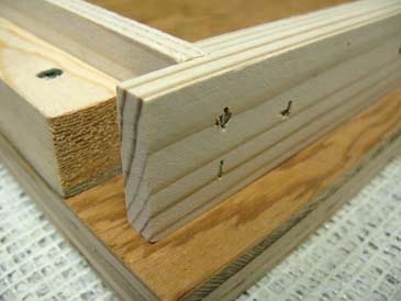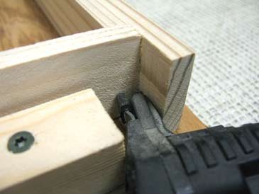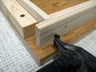 Step II. Using a staple gun with 1” staples (1/4” crown) attach the top bar to the end bars (2 staples per joint).
