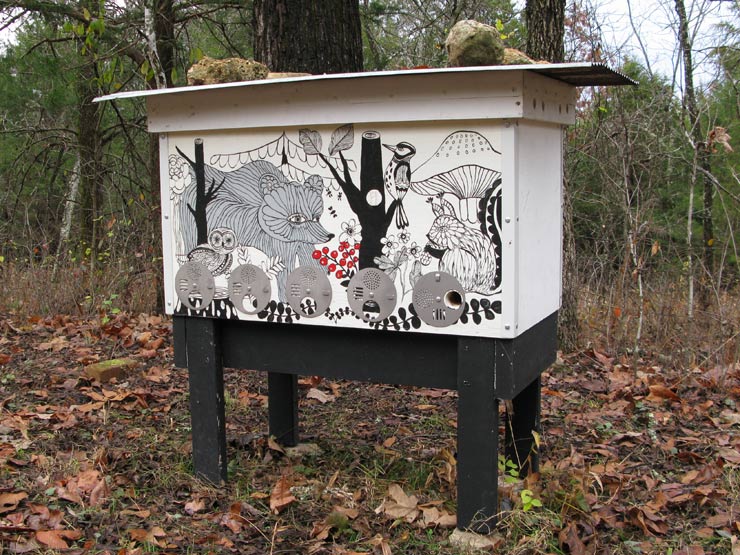 Masonry hive stands are permanent. Just support each end of the horizontal hive with a couple cinder blocks, and voila! But they are heavy to install, take more time to level, and don’t look as nice. (If you do use them, make sure to put a board between the block and the hive bottom, or the moisture trapped between the concrete and the hive will degrade the wood.)
