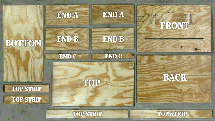 With this setup you can use standard frames while retaining many of the advantages of the extra-deep horizontal hive. The model described below will hold a maximum of 52 deep frames (26 per tier) on 1-3/8” spacing. The 2-5/8” free space under the lower frames is enough to install wire mesh and oil pans for pest control, if desired. The hive is made from a single 4’ by 8’ sheet of 23/32” sheathing plywood using a circular saw, a table saw with a dado blade, and a drill. It is assembled on 2-1/2” exterior wood screws. Here are step-by-step building instructions.