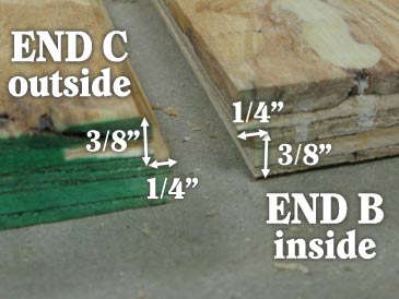Cut 3/8” by 1/4” rabbets along the outer bottom edge of parts “End A”, the inner top and bottom edges of parts “End B”, and the outer top edge of parts “End C”: