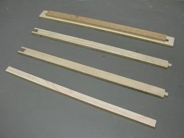 The frame has standard length (17-5/8” long with a 19” top bar - same as Langstroth). It consists of four parts: a top bar, two identical end bars, and a bottom bar: