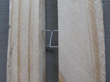 To maintain the required spacing between the frames in the hive, you need some kind of divider. I use 1/2” heavy-duty staples (like “T50”) on each 3/8” side of end bars. The staples stick out by 1/4”. Drive the staples in at exactly the same spot on all end bars (e.g., 12” down from the top end). Tilt the staples in the same direction as shown on the last picture above. You can use other dividers as well (e.g., short roofing nails or small strips of wood).