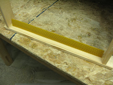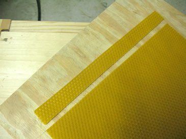 Some people paint the protruding slat with melted wax, but I don’t. It provides almost as good a guide as a strip of foundation.