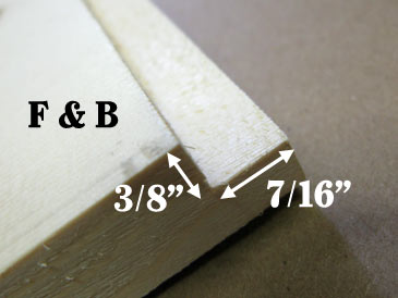 Step 2. Cut a rabbet 3/8” x 7/16” along one 11” edge of parts F and B. These are the frame rests.