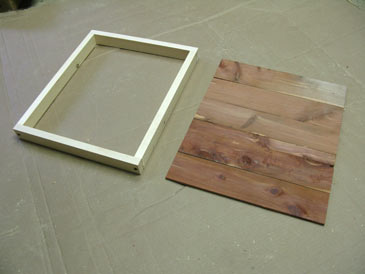 Step 9. Cut a piece of 1/4” plywood 17-1/16” x 14-3/8” or cut some scrap pieces of “one-by” boards to cover the same area. If you choose solid wood, use full thickness of “one-by” (3/4”) or rip it to 1/4” thick. The 3/4” option is better insulation and less work, but adds to the weight of the hive. Attach plywood or wood planks to the rim with glue and staples or nails (1” for 1/4” cover thickness; 1-1/2” fasteners if using 3/4” boards).