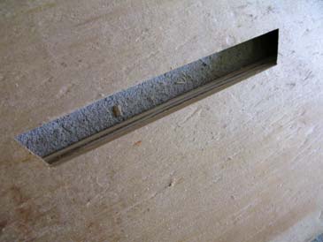Step 2. Cut a rabbet 1/4” x 7/16” along one 9-1/8” edge of each end wall cut in Step 1. These are the frame rests.