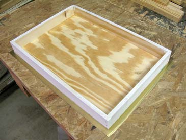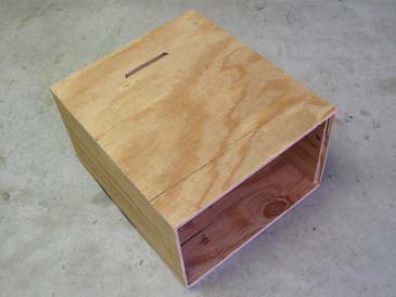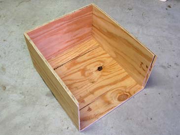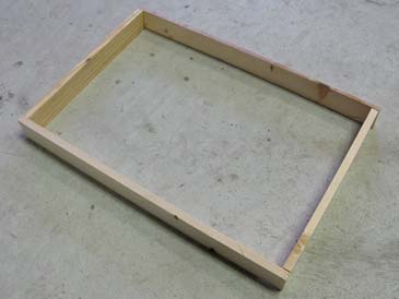 Step 5. Assemble the box. Put the bottom on a flat surface and attach one end wall with glue & staples (or nails), the frame rest facing inside. Attach the opposite wall (glue and staple), the frame rest facing inside. Attach the front wall to the assembly, then the back wall. The box is ready.