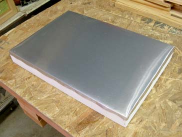 Step 8. Install flashing. Cut a 17-5/16” piece of 12”-wide flashing (in reality the nominal 12” flashing is usually a bit narrower, but it’s OK). Center the top on the flashing, lightly score the perimeter, notch the four corners, and attach with 3/8” staples as you fold the flashing around the top. Done!