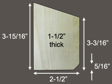 | STOP | 3-15/16” x 2-1/2” x 1-1/2” | stopping block, tapered - see Step 13 |