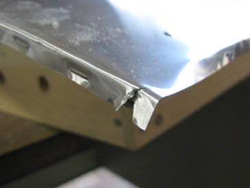Step 14. Cut a piece of 28”-wide aluminum flashing, 45” long. (Position a metal ruler on the cut line, score hard with a utility knife, then flex the flashing and it snaps.) Score gently with the back of the utility knife’s cutting tip along the central line of the flashing (14” from the corner, running the length of the panel). Clamp the scored line between two boards, line down, and push down to form the ridge. Your flashing now has a V shape corresponding to the roof. Position it over the roof’s plywood panels (Y), with 3/8” of aluminum protruding on all sides. Clamp at four corners, then fold the aluminum edges down and staple them to the Y edge with 3/8” stainless steel T50 staples. (Do it along one gable, then another gable, then the long sides starting from the middle.) Notch the four corners as shown and tuck the tab under. One key to making this metal work neatly without special tools is to use very thin metal (0.014”).