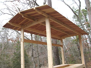 Step 6: Roof boards. Roof boards are 3/4” x 29” tongue and grove; board widths may vary — you’ll need enough to cover two slopes 10’ wide each. I milled mine from salvaged red cedar lumber that was destined for mulching. Attach to the beams with nails or predrill and use 1-5/8” exterior screws.
