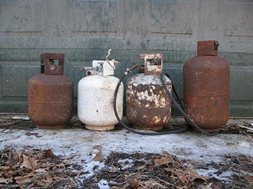 For the containers, I used old propane tanks that I cut in half with an angle grinder. Make sure the tanks have no propane left — drain, then unscrew the top valve before cutting. The cutting process generates enough noise to poison the entire neighborhood against you. Stainless steel pots at least 8” diameter and 8” deep will work too. The container should be very strong to support heavy weight and not crack when water freezes (plastic buckets or thin metal bowls won’t work).