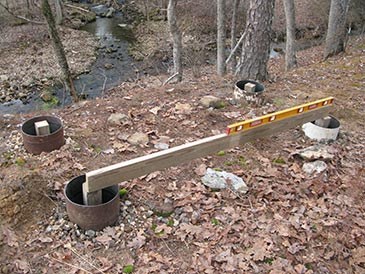 Install the containers so their centers correspond to the four corners of the bee bed (37” x 85”; 92-11/16” diagonal). Check with a level and record depth differences: if the terrain is very uneven, you’ll need to make legs different length.